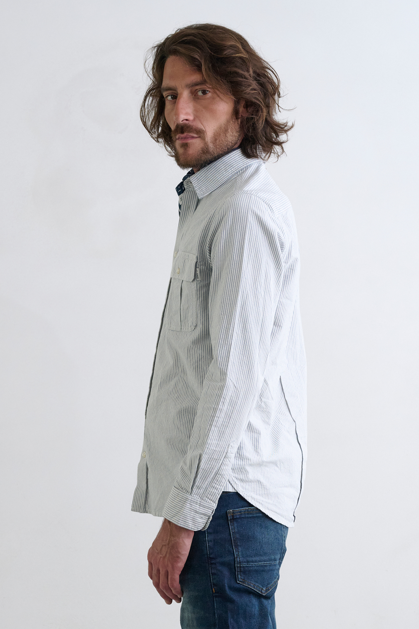 J.C. RAGS RUSTER CASUAL OVERHEMD LANGE MOUW MIDNIGHT STRIPE