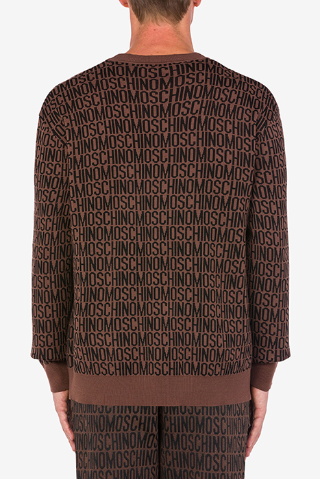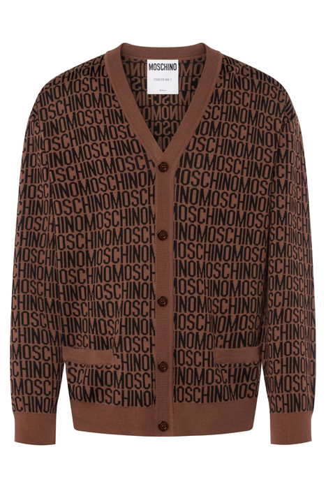 ALLOVER LOGO JACQUARD WOOL CARDIGAN DARK BROWN