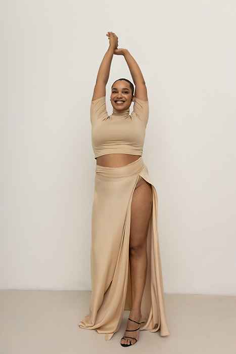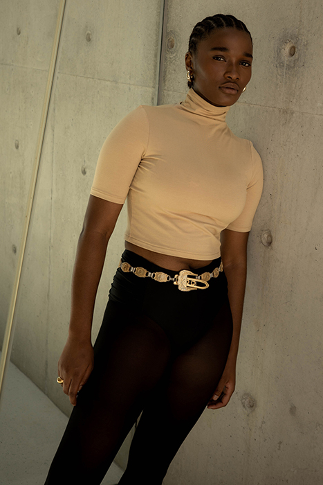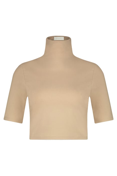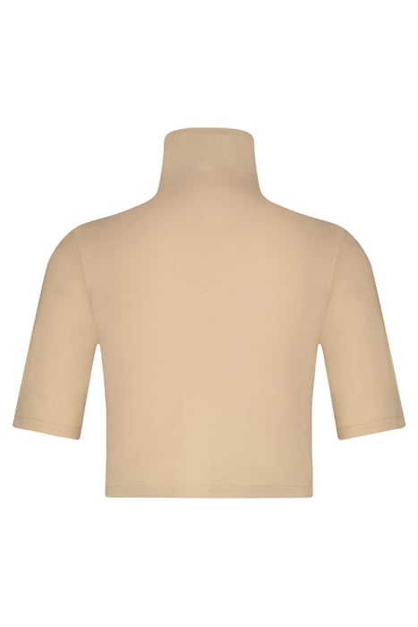 The Viveh Amber Top Is A Fitted, Slightly Longer Crop Top With A Turtleneck And A Mid-Length Sleeve.