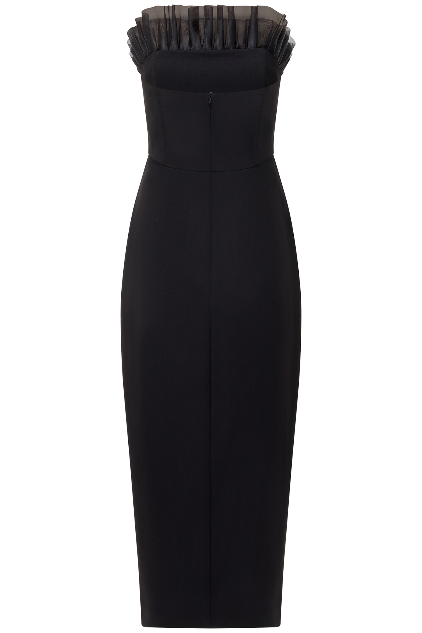 BANDEAU ORGANZA MIX FRILL MIDI DRESS BLACK