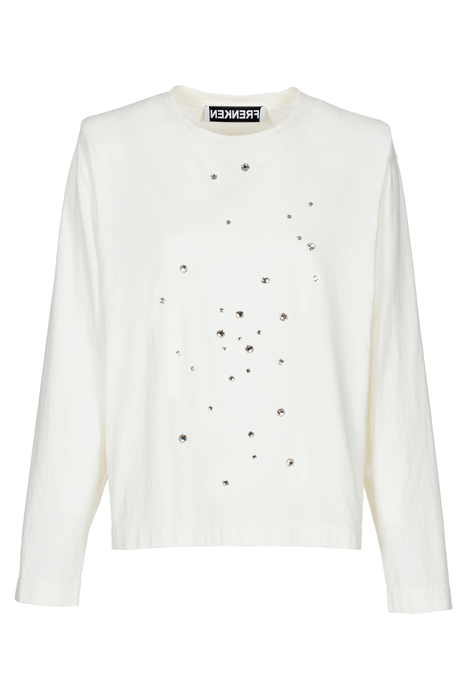 Cotton Long-Sleeved Top In Off-White. Features Sprinkled Swarovski Diamonds, And Shoulder Pads. True To Size.