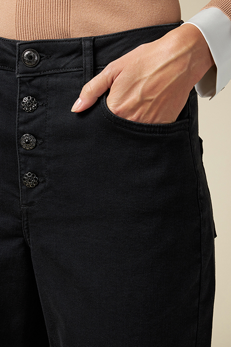 Black Wash Eco-Friendly Stretch Cotton Denim Boyslim Jeans,Fastened With Jewel Buttons