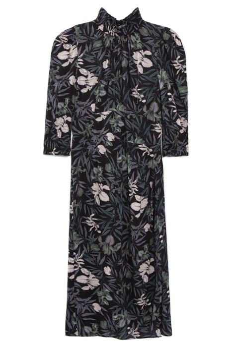 BLACK LENZING™ ECOVERO™ ORCHID PRINT MIDI DRESS