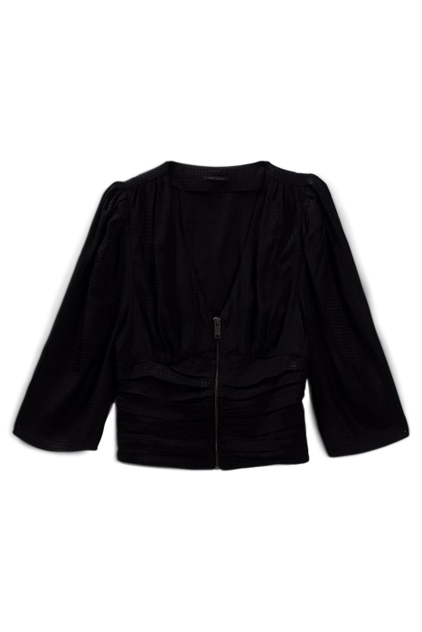 BLACK OPTICAL POLKA DOT MOTIF JACQUARD BLOUSE