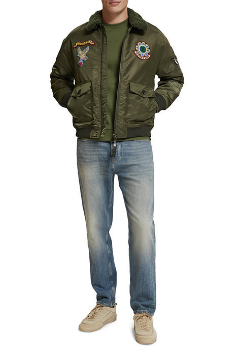 BOMBER JACKET WITH DETACHABLE TEDDY COLLAR MILITARY GREEN