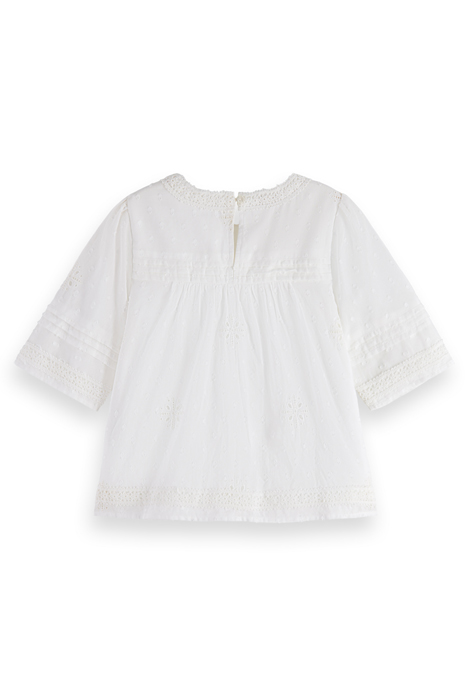 BRODERIE ANGAISE & CLIP JACQUARD TOP OFF WHITE