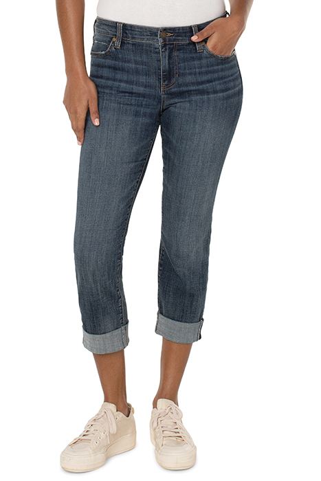Mid-Rise Crop Showcasing A Wide Cuff Detail From Our Love By Liverpool Collection. A Must Have Style That Pairs Perfectly With That Shoe You Love!