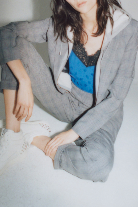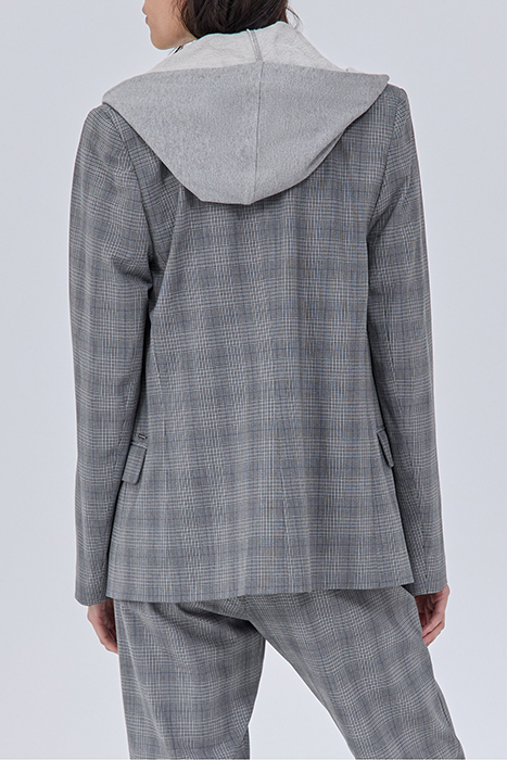 CHECKED SUIT JACKET WITH HOODED FACING
