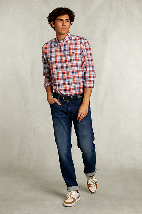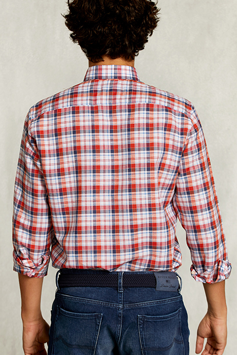 CUSTOM FIT CHECKED SHIRT LINEN-COTTON MULTI RED