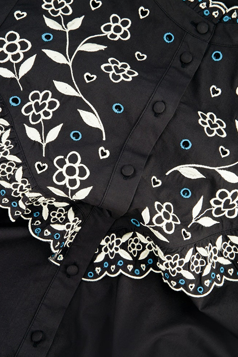 Short Dress With Fabric Button Closure And Tie Belt At The Waist. Dailia Dress Has Balloon Sleeves And Beautiful Openwork Details On The Collar, Chest, Sleeves And Back.