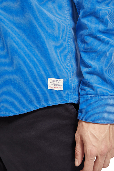 Introducing the Scotch & Soda Essential Corduroy in Rhythm Blue. Elevate your casual wardrobe with this classic corduroy piece from Scotch & Soda. Crafted from premium quality corduroy fabric, this jacket features a timeless design with a modern twist. The rich rhythm blue color adds a subtle pop of color to your outfit, making it perfect for both casual and semi-formal occasions. Pair it with your favorite jeans for a laid-back look or layer it over a shirt for a more polished ensemble. Upgrade your outerwear collection with this versatile and stylish corduroy jacket from Scotch & Soda.