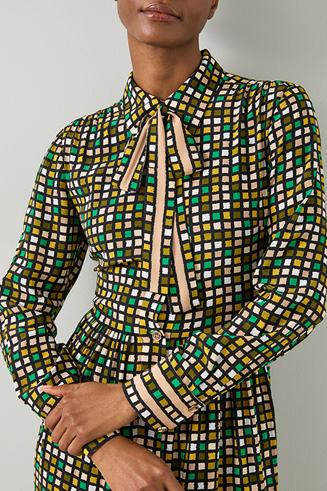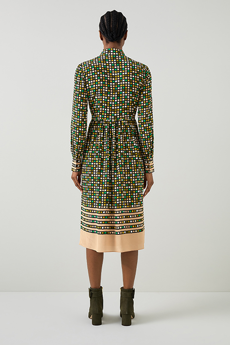 Embrace Sophisticated Elegance With Our Ethel Scarf Print Silk Shirtdress. Featuring A Geometric Black Multi Design, This Full Length Sleeve Woven Dress Showcases A Luxurious Silk Material And A Classic Collar. Perfect For Workwear, Pair It With Sleek Heels Or Stylish Ankle Boots For A Refined Look.
