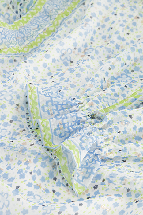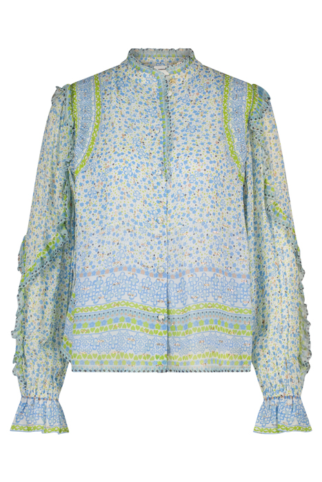 See-Trough Blouse With A Beautiful Print And Lurex Details. Etje Blouse Has All Over Ruffle Details.