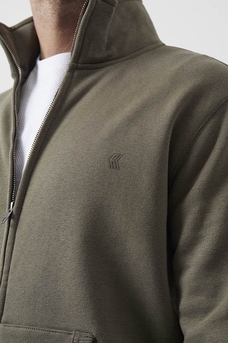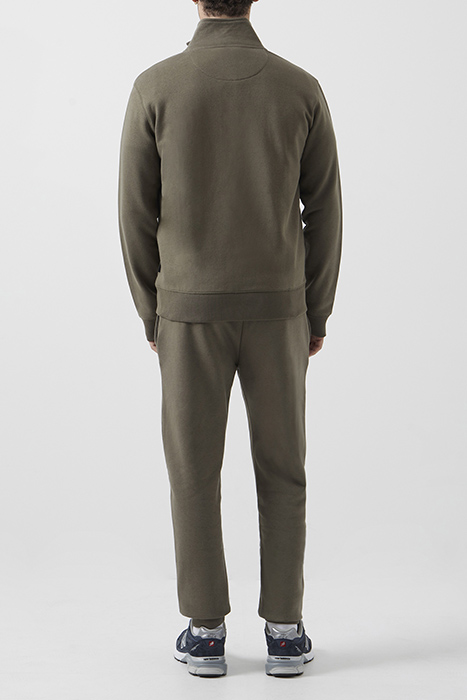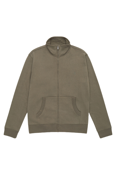 FUNNEL NECK ZIP-THROUGH SWEATER KHAKI/DARK NAVY