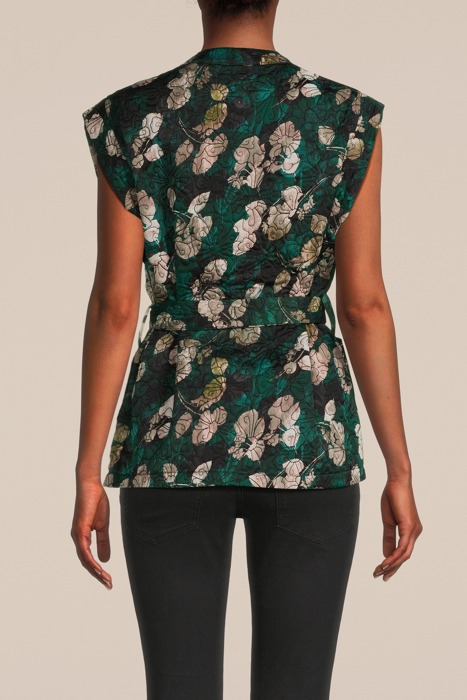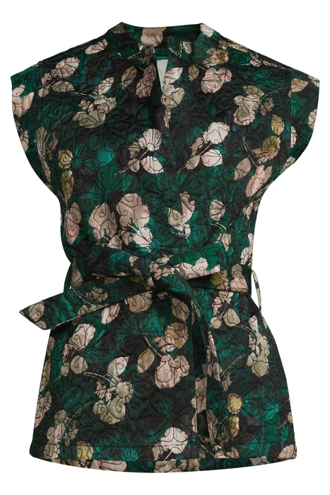 GILET FLOWER QUILTED PRINT GREENS