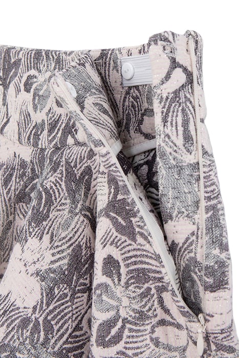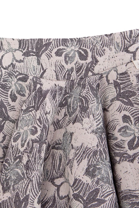 Jacquard Fabric, Exclusive Floral Maxi Pattern, Skater Shape: The Short Skirt Stands Out For Its Couture Spirit. We Like The Sobriety Of The Colors, All In Shades Of Gray, Easy To Match With A Plain Top.