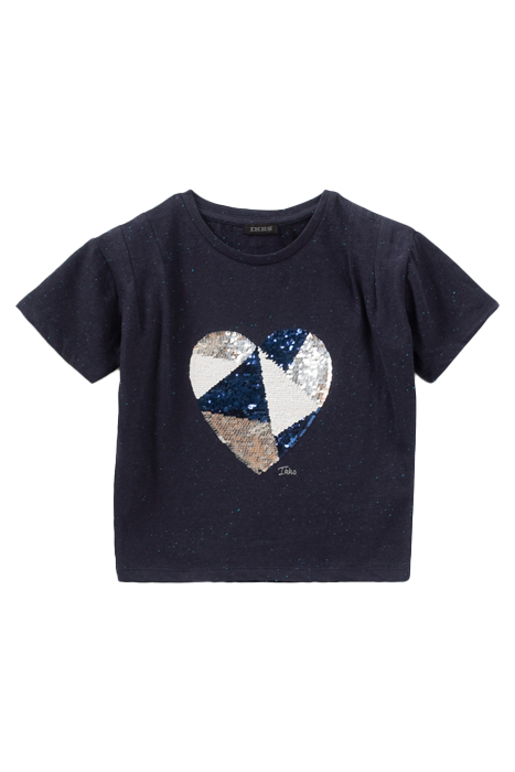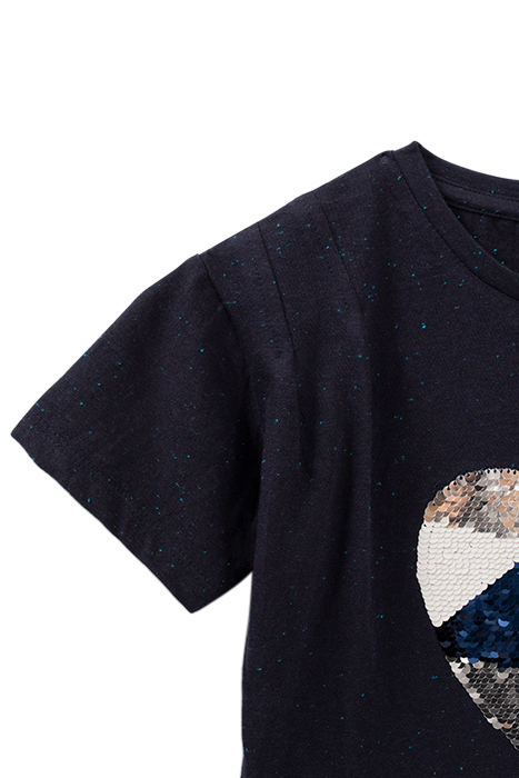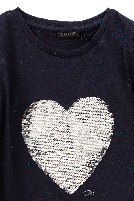 GIRLS' INDIGO REVERSIBLE SEQUIN HEART T-SHIRT