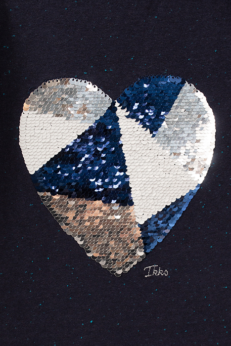 Heads up, this is a T-shirt full of love! Girls can choose their marl T-shirt’s style thanks to reversible sequins, either all silver or silver, white, and blue.