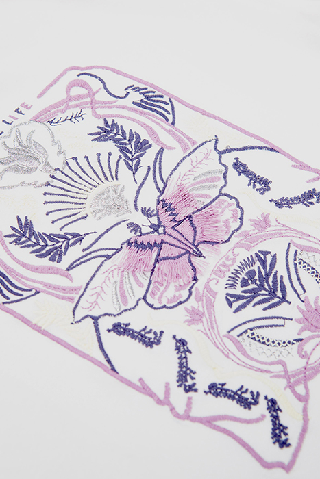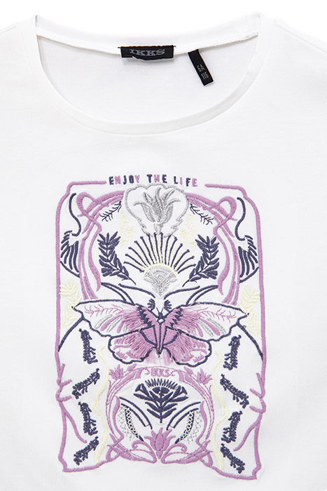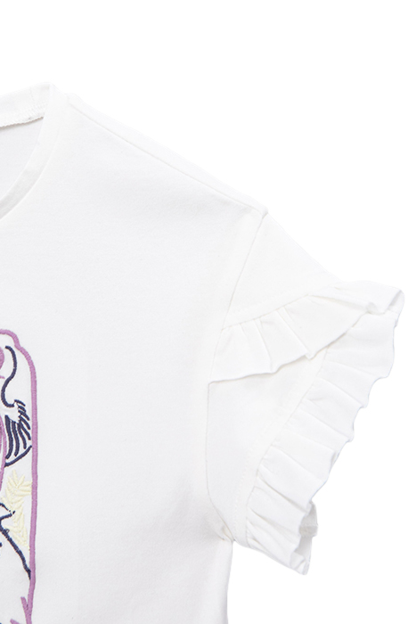 GIRLS’ OFF-WHITE T-SHIRT WITH FLORAL EMBROIDERY