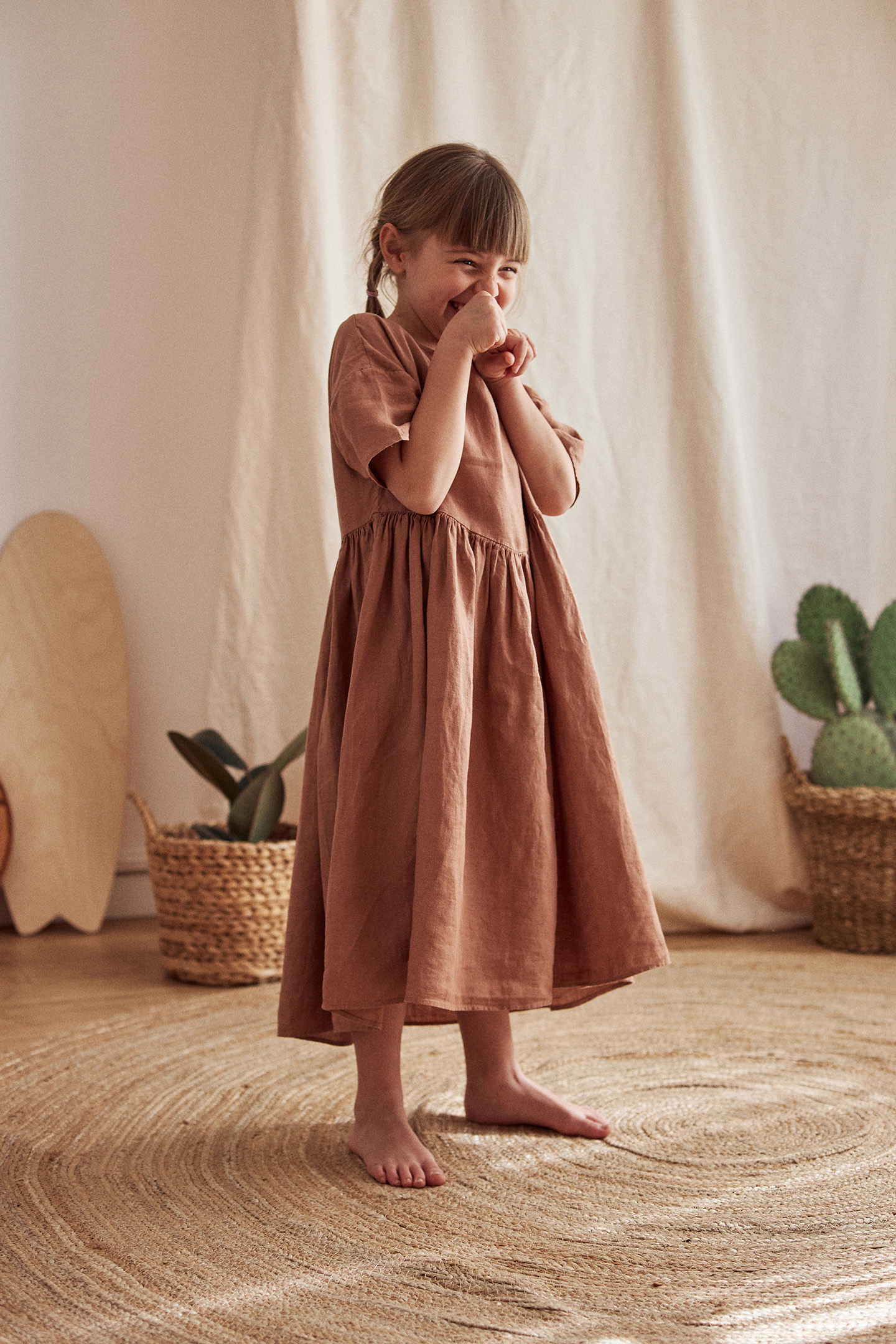 A Sundress To Match The Weather! The Zapillo Is Designed In Beautifully Soft And Breathable Organic Linen With A Triangular Gathering On The Waist And Lace Detail On The Nape Of The Neck.