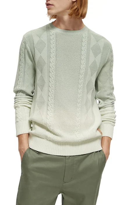 GRADIENT COTTON CABLE KNIT PULLOVER MINT