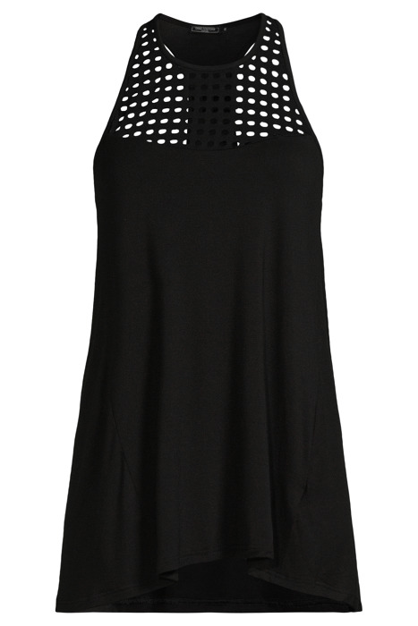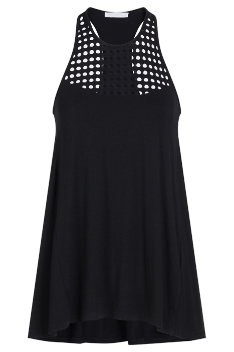 The Harlow Is A Sleeveless Modal Top Featuring A Perforated Mesh Front Cut By Regular Holes, Round Neckline And Jersey Body. This Top Offers A Natural, Light And Silky Fiber For An Enhanced Comfort. Modal Is Particularly Absorbent And Breathable.