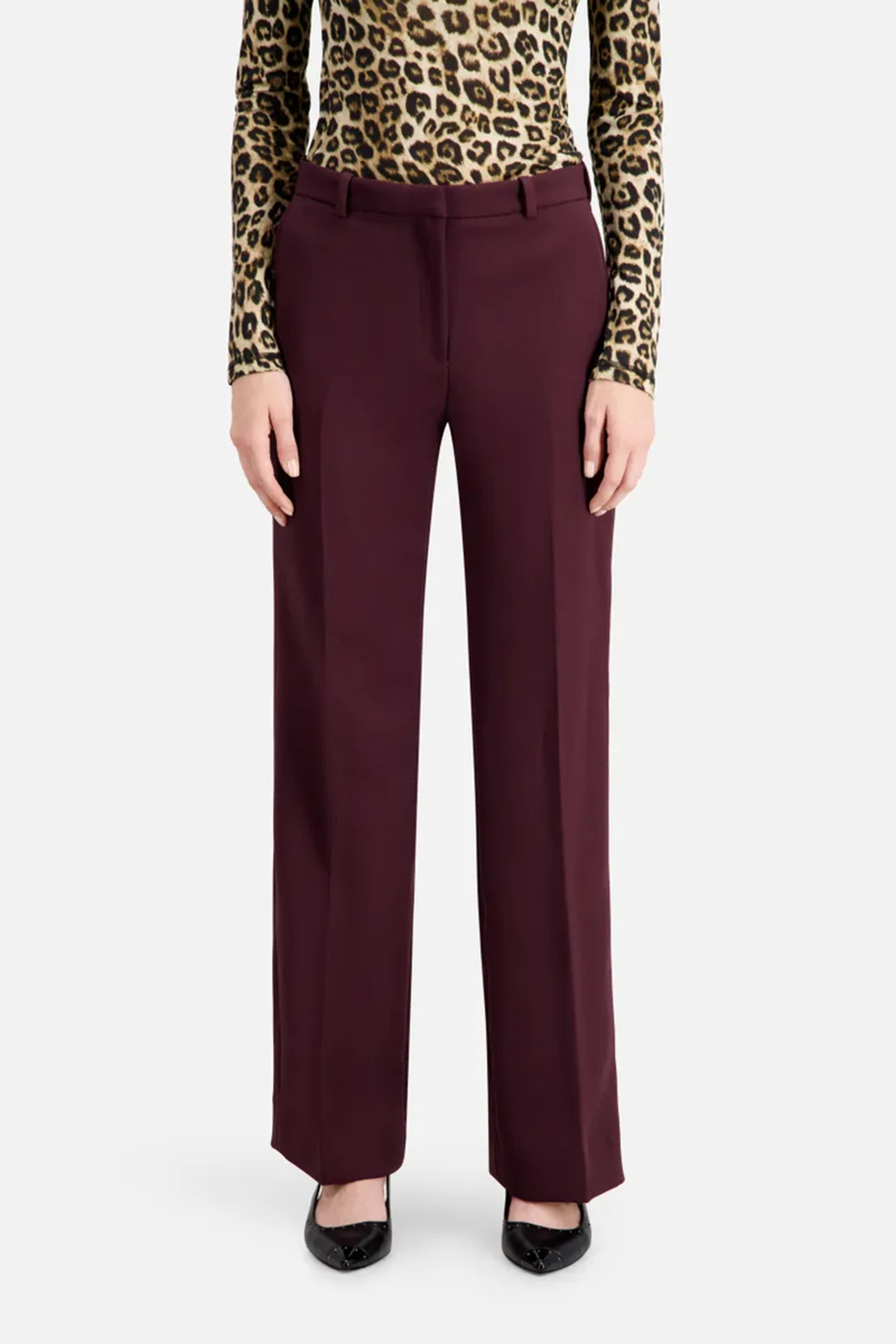 HIGH WAIST WIDE LEG SUIT PANTS BURGUNDY