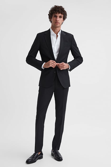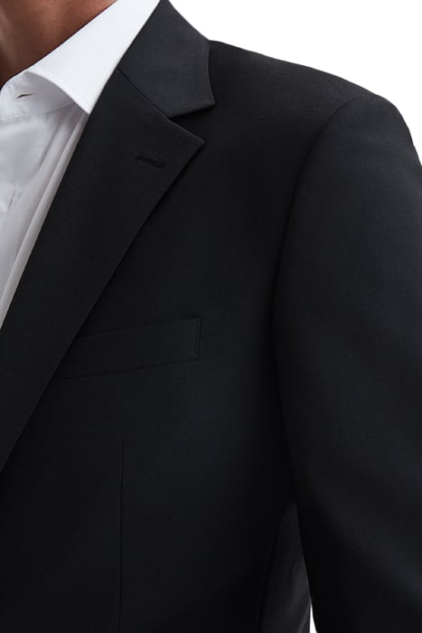 Crafted From A Wool-Rich Blend, The Hope Modern-Fit Blazer In Black Is The Easiest Route To Tailored Perfection. It Boasts A Subtle Stretch, Helping To Maintain The Shape Of The Garment And Increase Comfort For The Wearer. This Piece Is Best Styled Over A Shirt With Its Coordinating Partners For A Polished Boardroom Look.