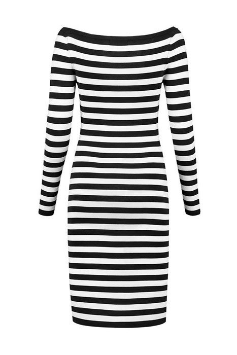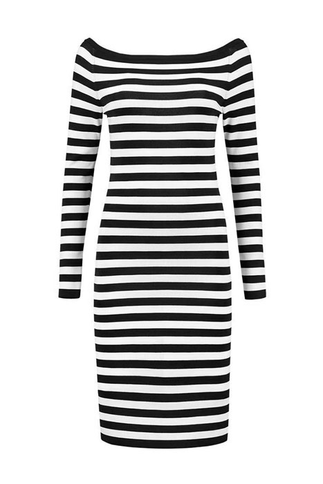 JOLIE OFF SHOULDER DRESS BLACK/OFFWHITE STRIPE