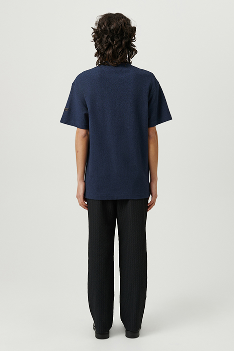 Kai Is A Relaxed-Cut T-Shirt. 1X1 Rib At The Neck. The Garment Is A Twin Needle Stitched At The Armhole, Neck, Bottom, And Sleeve Hem. Embroidered Soulland Patch At Left Sleeve. Made In Boucle Jersey