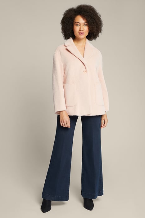 Coat With One Button, A-Line, Made Soft And Comfortable With Long-Hair Bouclé Fabric,Lapels Collar, Patch Pockets