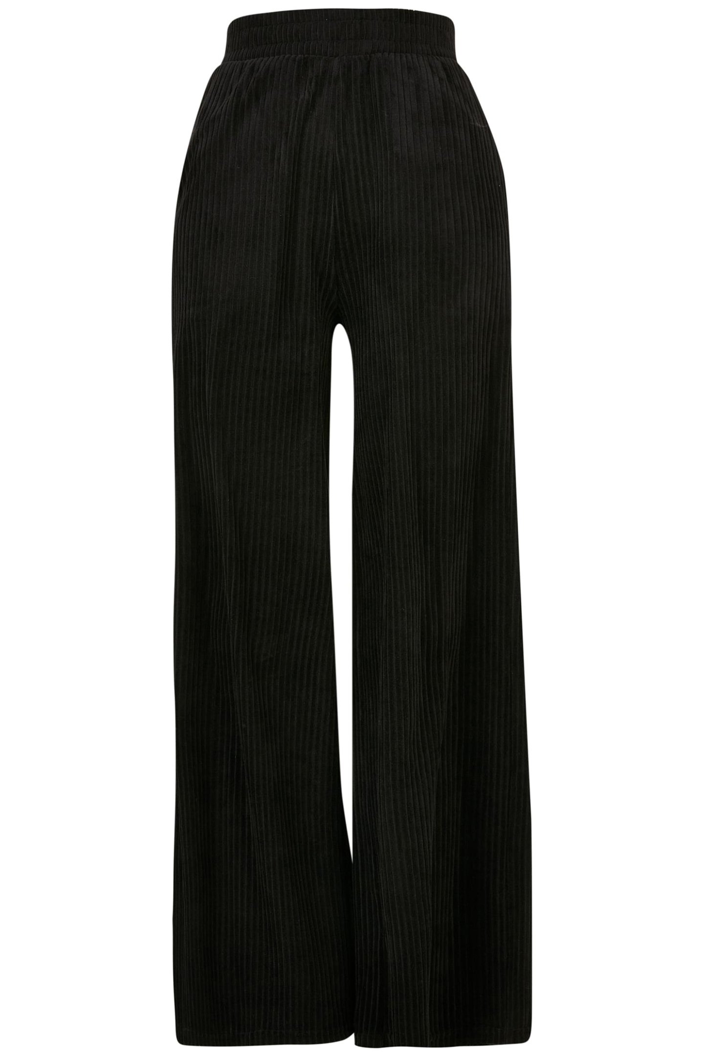 LADIES VELVET RIB STRAIGHT SWEAT PANTS BLACK
