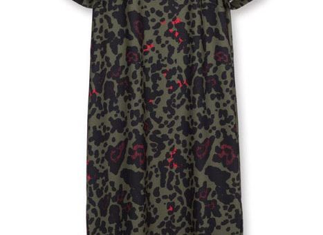 Ladies Woven Dress Long Leopard Army Green