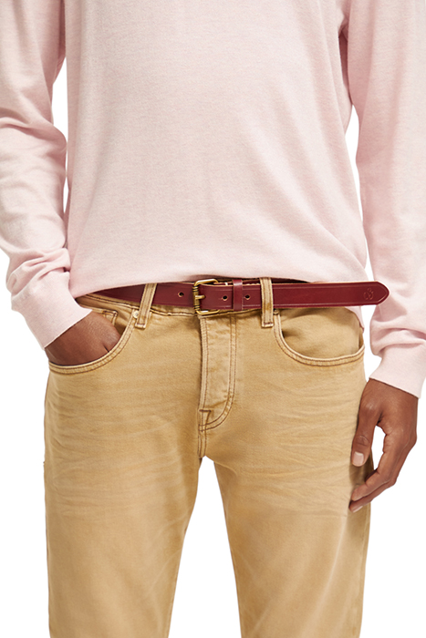 LEATHER BELT WITH RAW EDGE GARNET