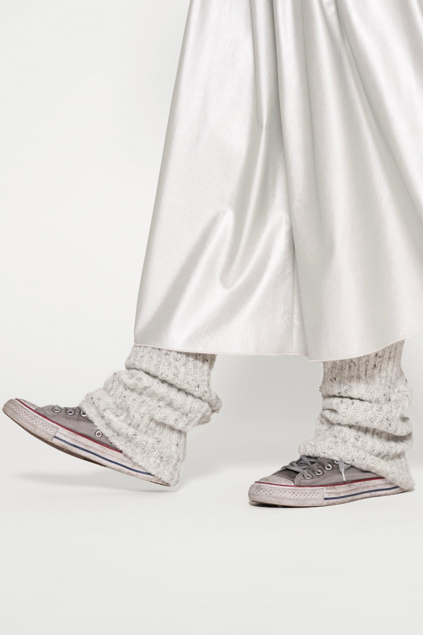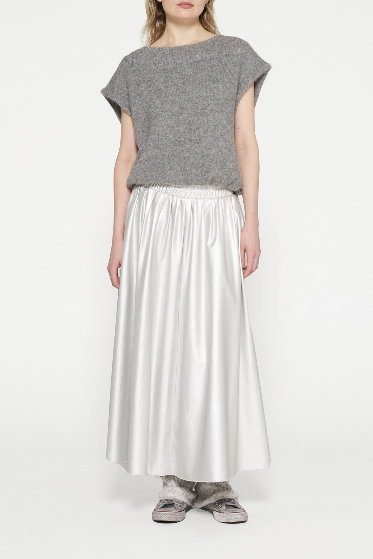LEATHER LOOK PLEATED SKIRT SILVER