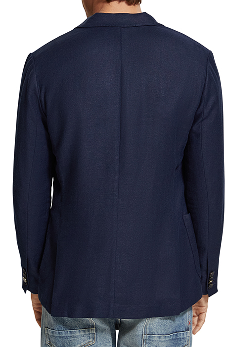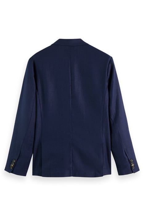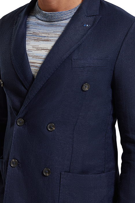 LINEN BLEND HERRINGBONE DOUBLE BREASTED BLAZER NAVY BLUE