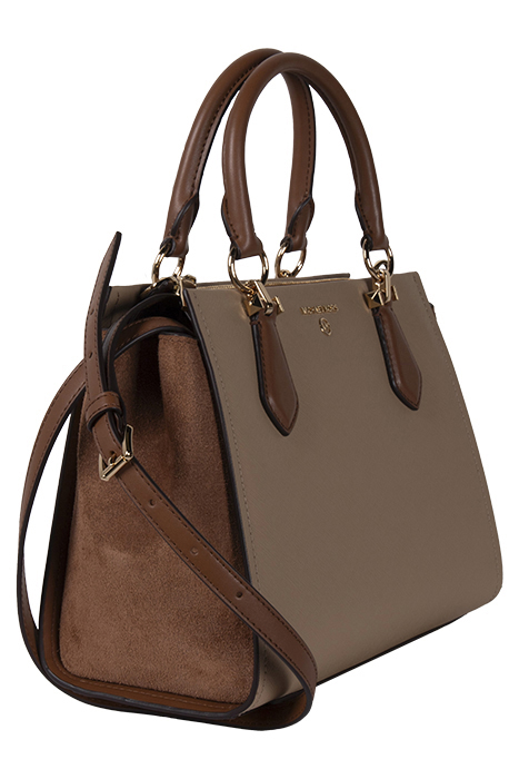 MEDIUM SATCHEL BAG IN CAMEL AND TAN