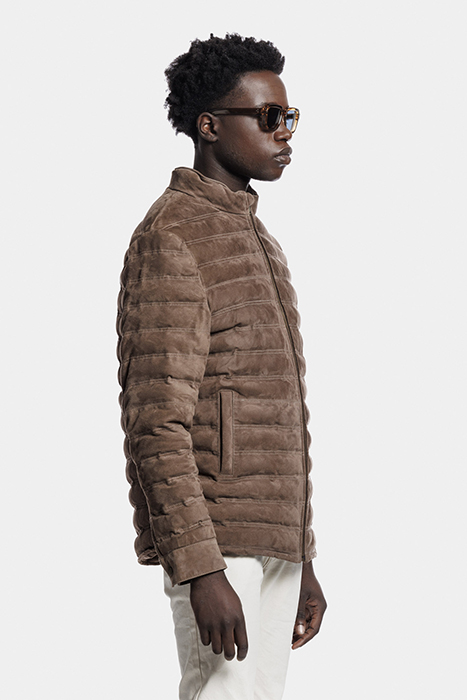 A Padded Jacket Crafted From Supple, High-End Goat Suede. The Piece Features Pockets On Either Side And The Front Closure Fastens With A Simple Zipper. The Side Of The Jacket Is Nicely Rounded, Which Creates A More Luxury Look.