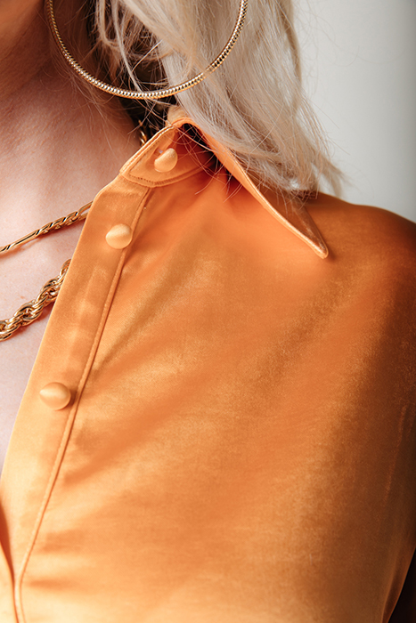 METTE SATIN WRAP DRESS LS RUST ORANGE