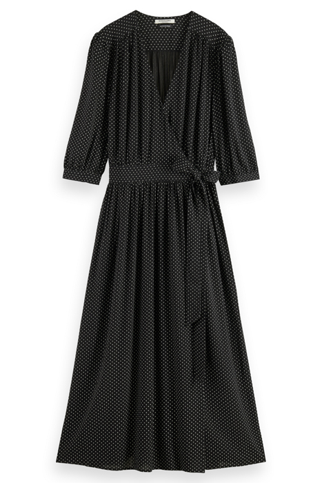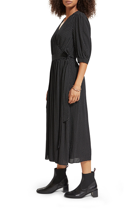 MIDI WRAP DRESS POLKA EVENING BLACK