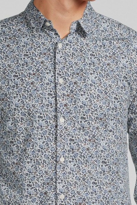 NAVY ORGANIC MICRO-FLOWER PRINT SLIM SHIRT NAVY