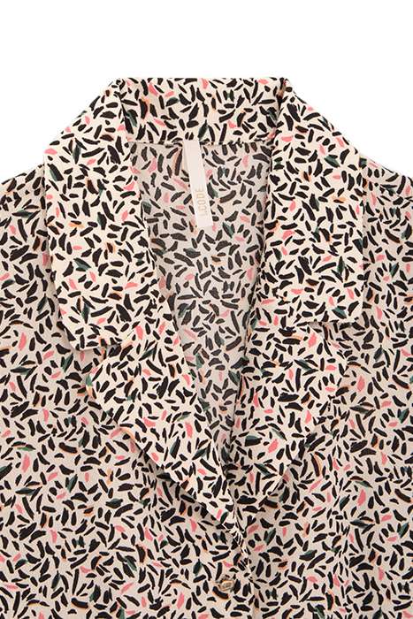 Women’S Off-White Playsuit . Suit Collar, Short Sleeves With Fixed Turn-Ups . Exclusive Leaf Print Designed By I.Code, 2 Side Pockets . Elasticated Waist With Smocking . Buttons Down Front To Fasten.