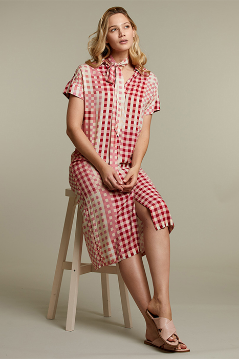 PINK CHECKED BELTED DRESS