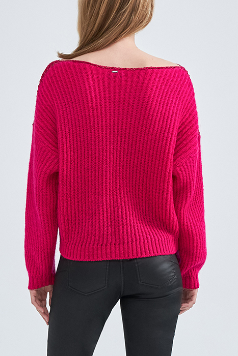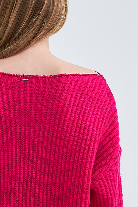 PINK RIBBED KNIT SWEATER WITH LUREX DETAILS
