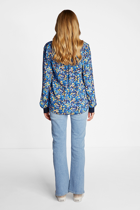 PRINTED V-NECK BLOUSE GRS MIDNIGHT BLUE