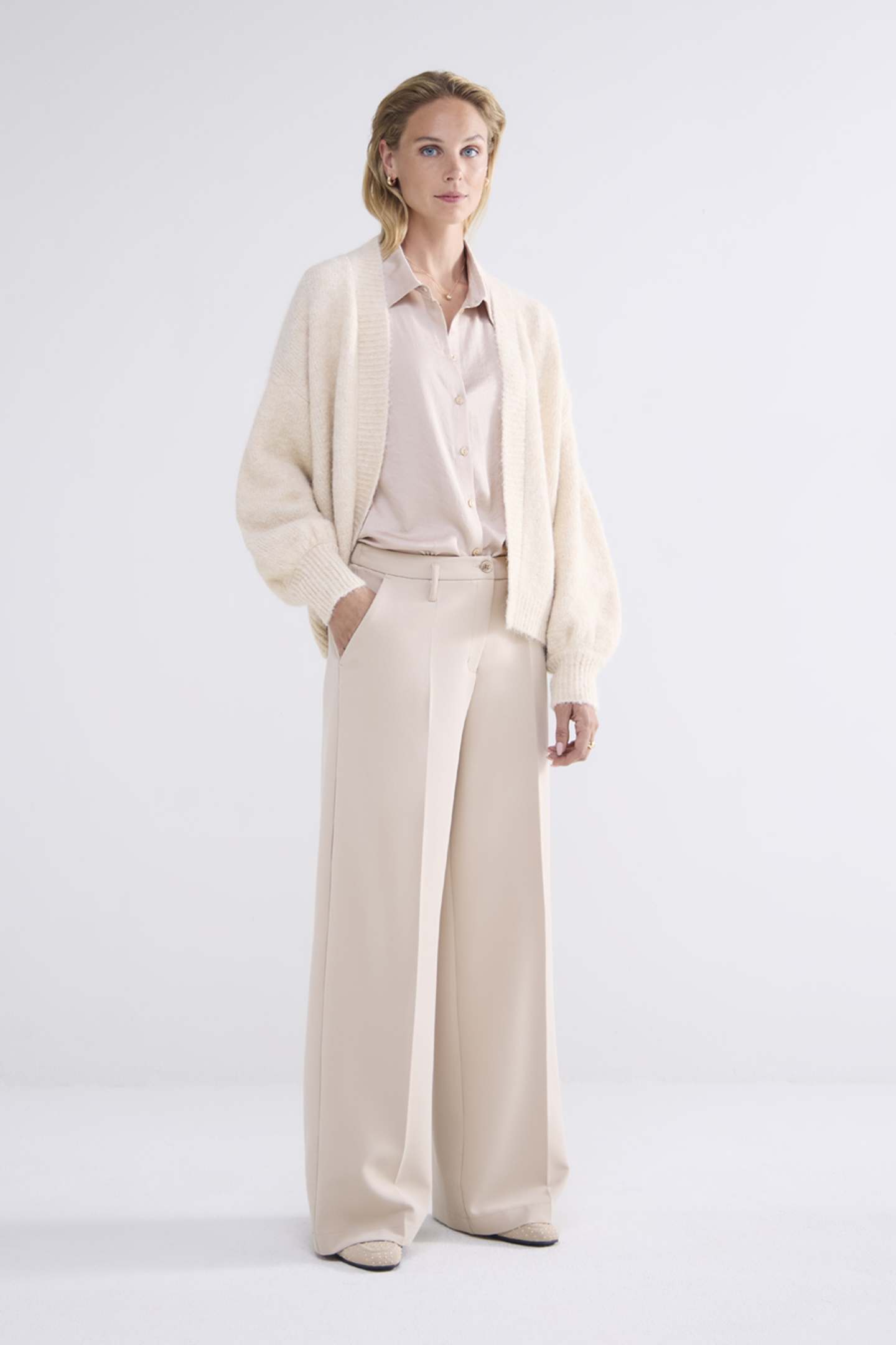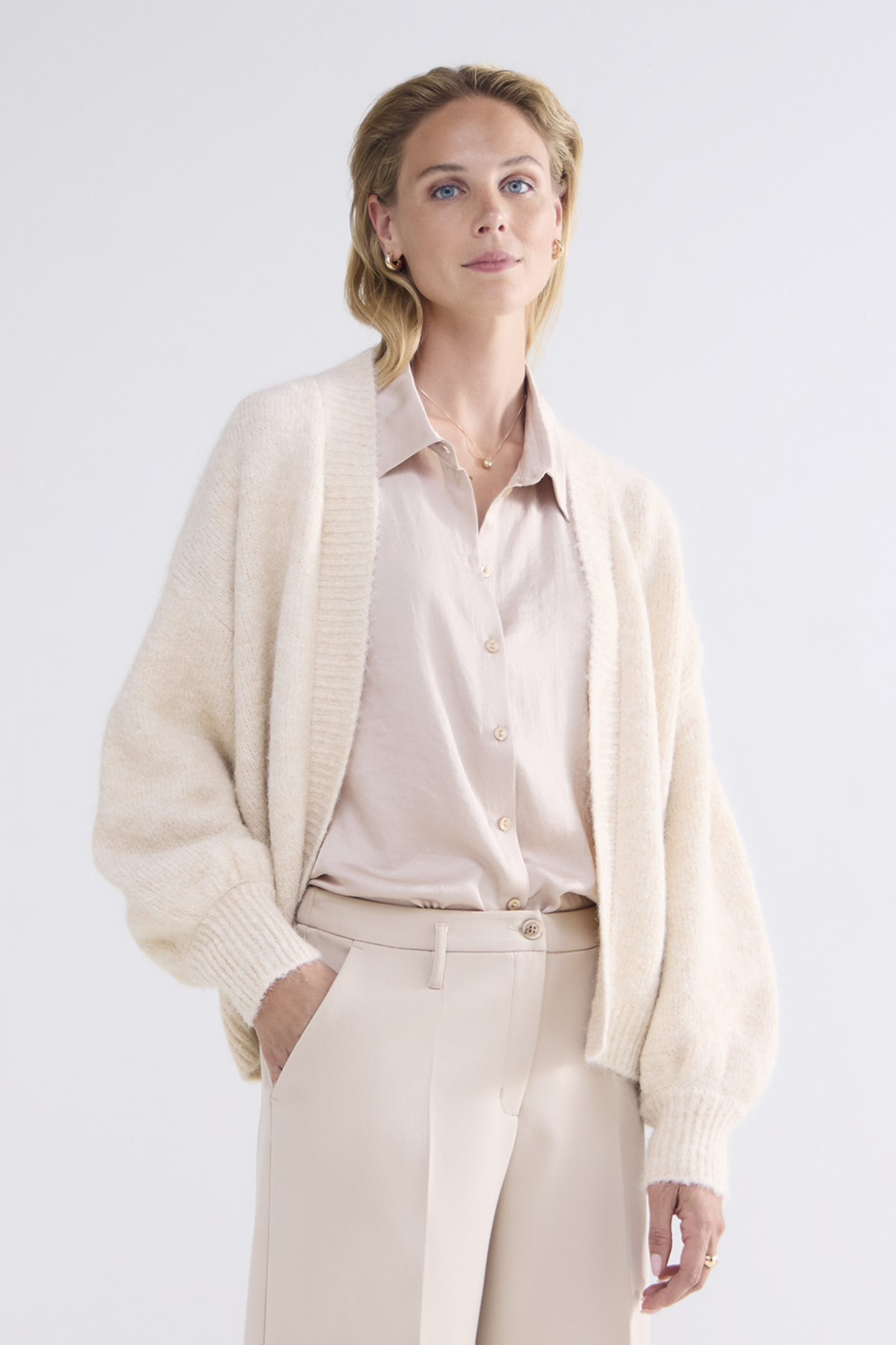 PUFF SLEEVE CARDIGAN COZY MELANGE KNIT CARAMEL COFFEE
