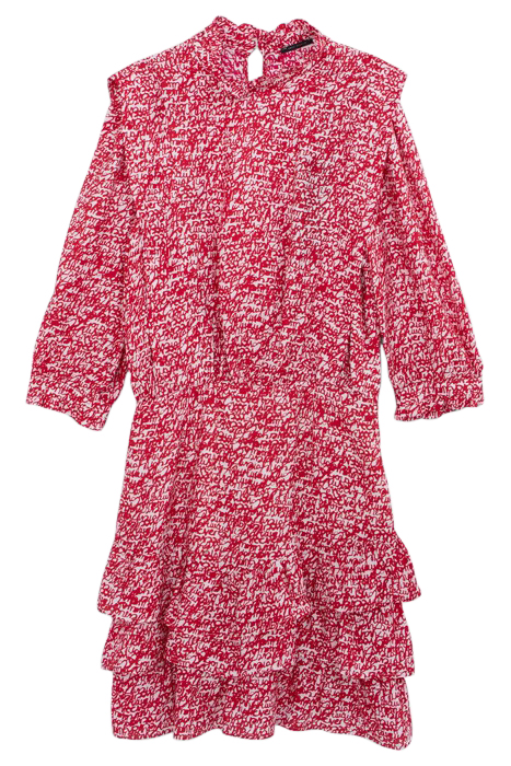 RED TAG PRINT RUFFLED DRESS