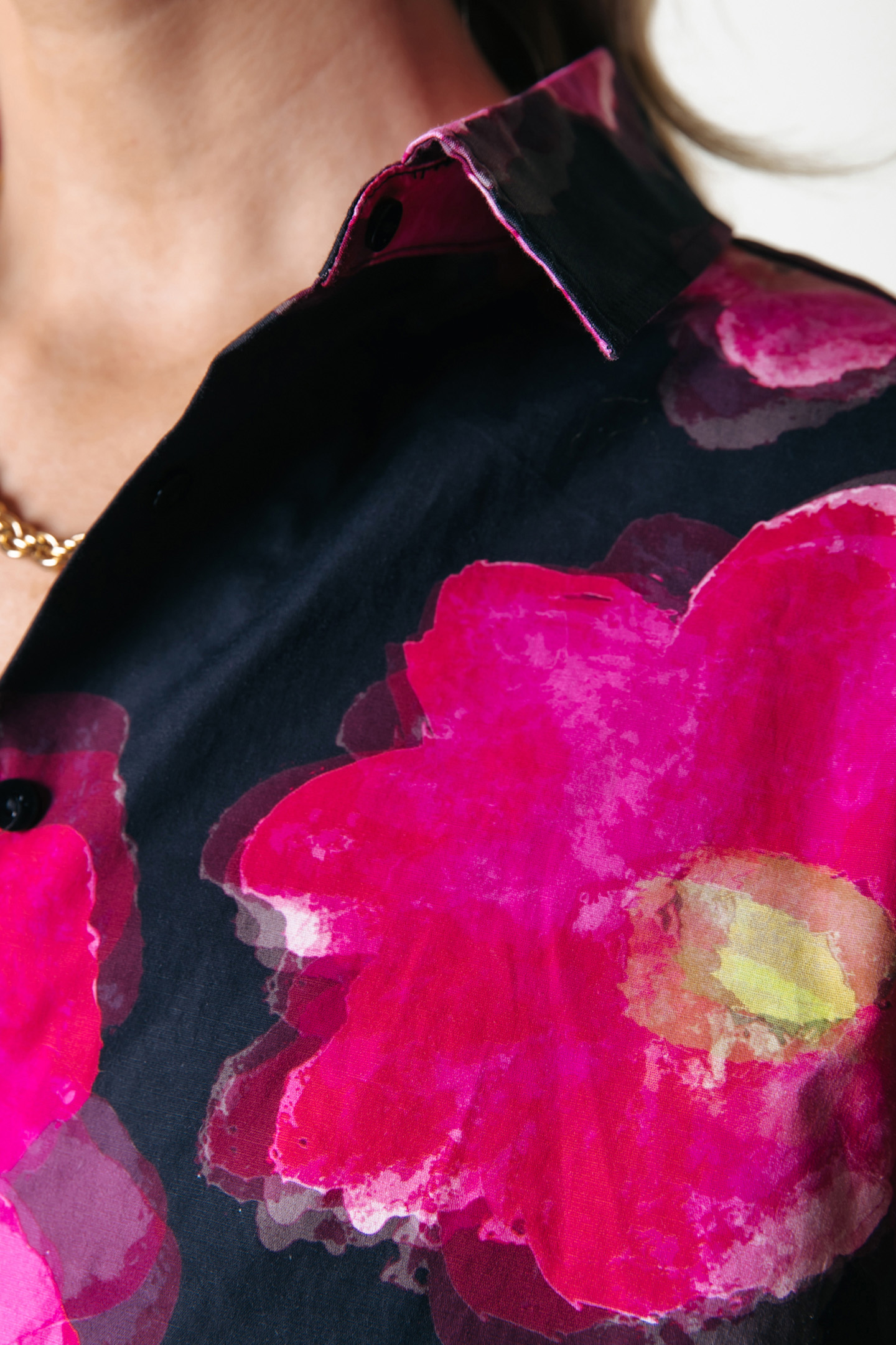 ROSE POPPY FLOWER GATHERED SHIRT DRESS BRIGHT PINK