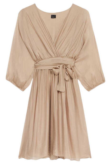 SHORT CROSSOVER SILK BLEND DRESS BEIGE