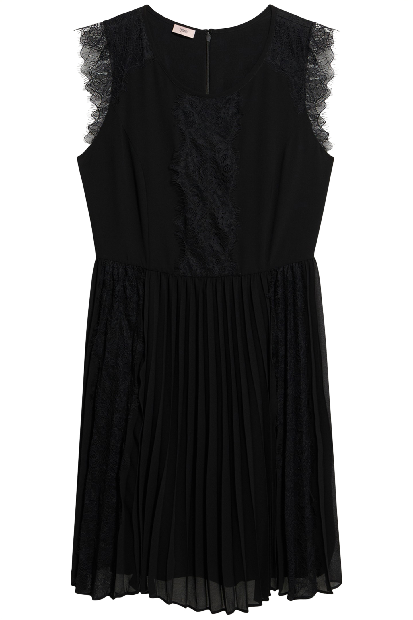 Short, Sleeveless Flowing Georgette Dress, Tone-On-Tone Lace Inserts, Pleated Skirt, Round Neckline, Zip Fastener At The Back And Inner Lining.,